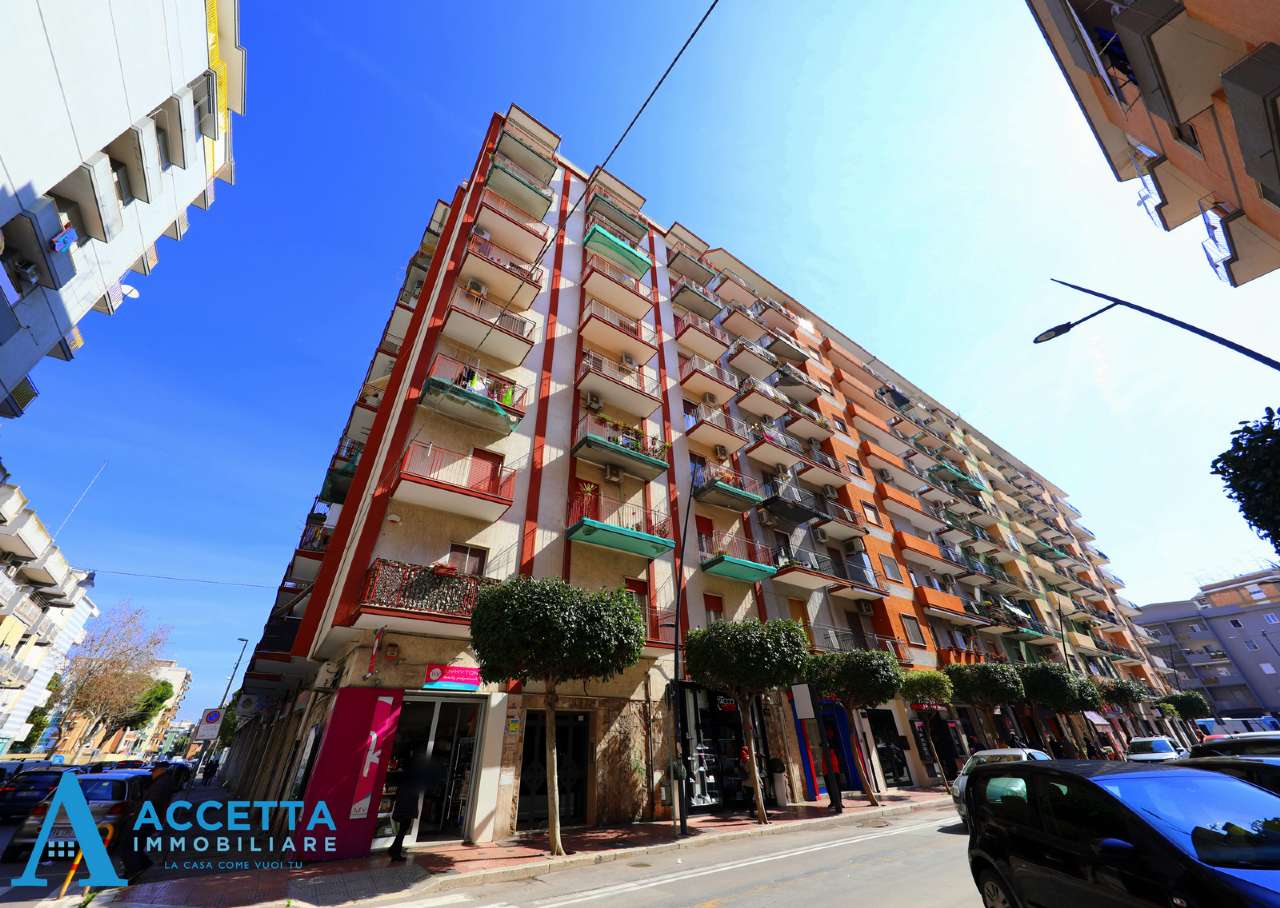 Appartamento ristrutturato con terrazzino, in vendita in Viale Liguria, Taranto. Ubicato al 7° piano, all'interno di stabile signorile con ascensore, l'appartamento si compone di un ingresso-corridoio, una cucina abitabile, 2 stanze, un bagno, un vano giorno con uscita sul terrazzino panoramico di circa 20 mq., due verande su balcone interno ed un balcone con affaccio esterno su Via Lazio. Situato in esclusiva e servitissima zona, nel cuore di Rione Italia - Montegranaro in Taranto, l'appartamento presenta comodi spazi, ottima luminosità , buone rifiniture ed è inoltre completo di impianto di riscaldamento autonomo, 3 climatizzatori, infissi in alluminio con doppio vetro, zanzariere, porta blindata, il tutto in buone condizioni.